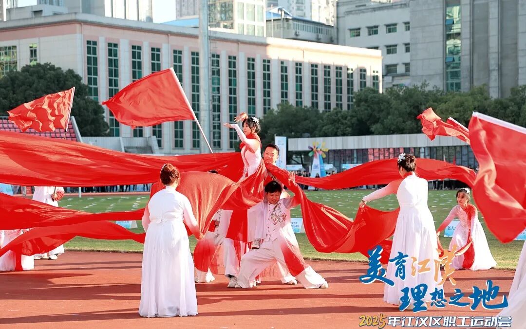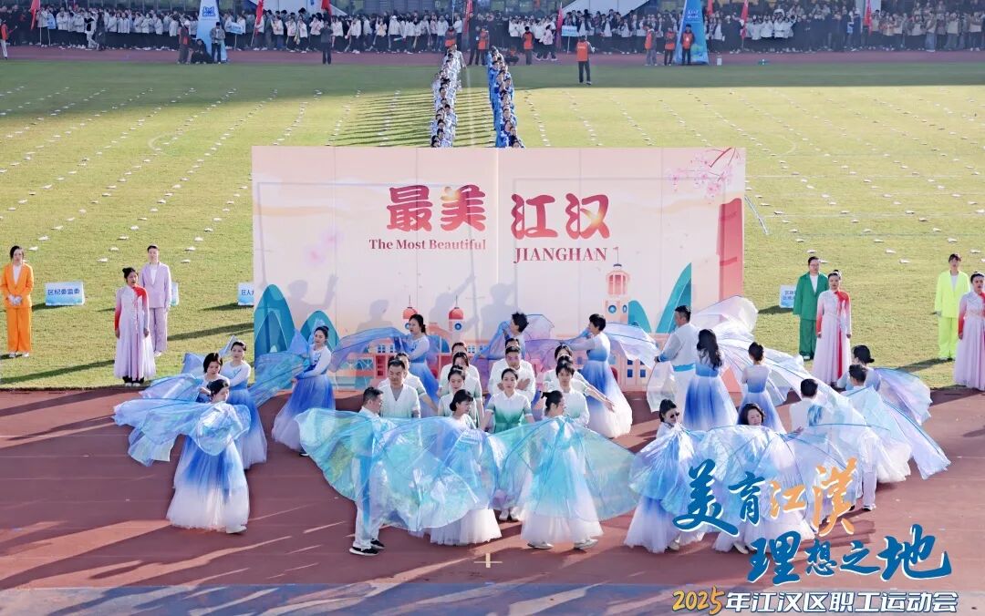 文藝演出環(huán)節(jié)同樣精彩紛呈。開場舞《美麗中國》以熱情舞步禮贊祖國;體育舞蹈《躍動未來》上演力量與美的碰撞;《活力江漢》歌曲串燒中,小歌手彭彥凱與武漢天使童聲合唱團(tuán)帶來動人演唱,職工歌手聯(lián)袂獻(xiàn)唱《江漢四季》《相親相愛》,引發(fā)全場共鳴;千人工間操展演氣勢恢宏,全場配合呈現(xiàn)“I?JH”巨型畫面,將開幕式推向高潮。