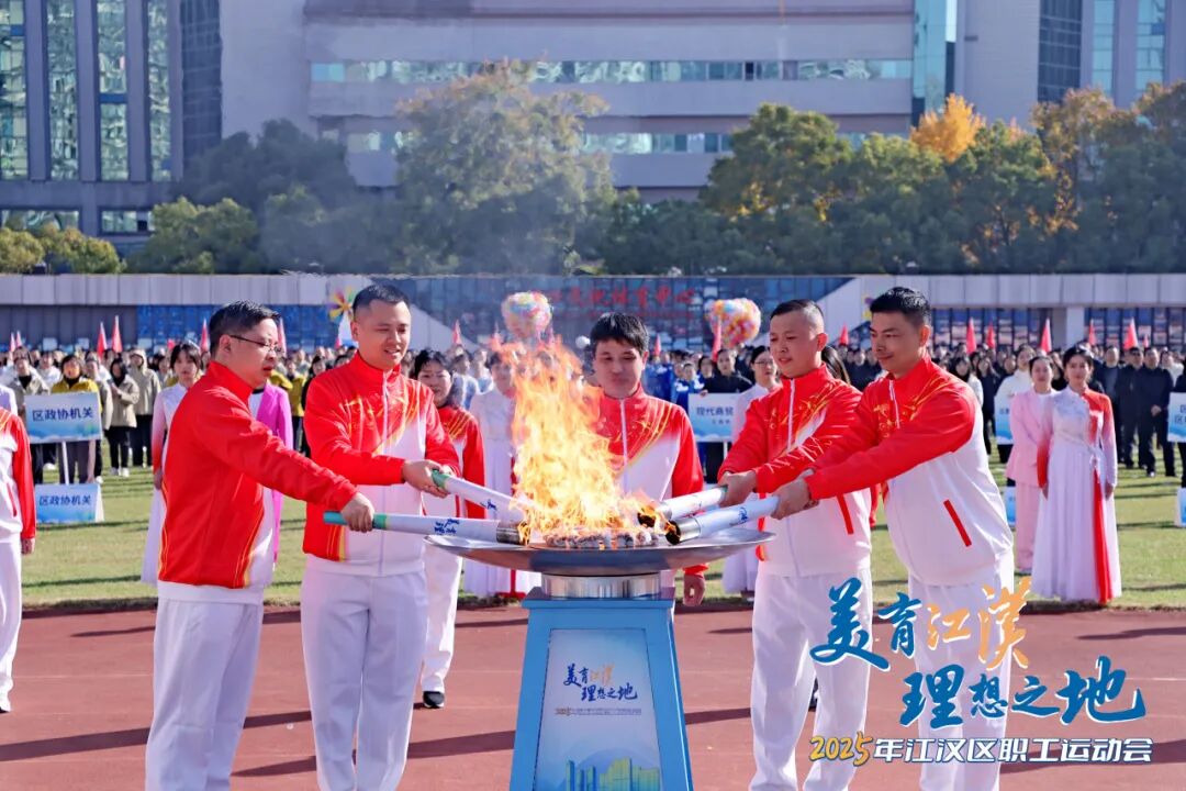 現(xiàn)場,“新興之火”“數(shù)智之火”“金融之火”“樞紐之火”“人文之火”五棒火炬依次點(diǎn)亮,張裕、付俊、邵青、張寶劍、孟廣松等15位勞模代表接力傳遞。燃燒的火焰,照耀著江漢區(qū)在科技創(chuàng)新、數(shù)字化轉(zhuǎn)型、金融強(qiáng)區(qū)、商貿(mào)物流、文商體旅融合等發(fā)展領(lǐng)域堅定向前。當(dāng)所有火炬手共同點(diǎn)燃主圣火盆,彩球騰空,全場沸騰,運(yùn)動會正式開幕。