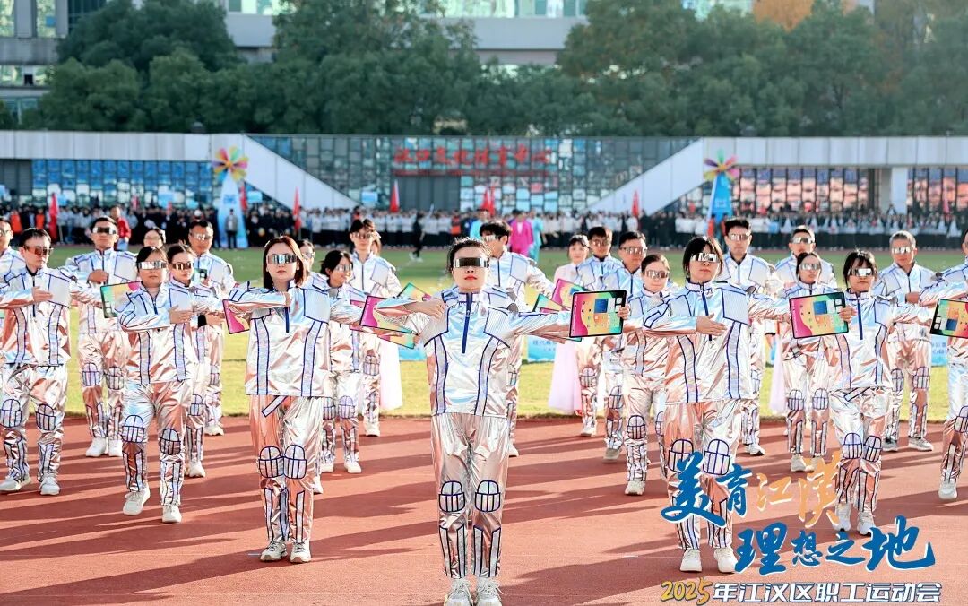 本屆運(yùn)動會,由73家單位組成的59支隊伍,伴隨著激昂的運(yùn)動員進(jìn)行曲,五大特色方陣率先登場。紅色領(lǐng)航方陣高舉信仰之旗,彰顯江漢干部職工在黨的引領(lǐng)下凝心聚力、共謀發(fā)展;金融強(qiáng)區(qū)方陣踏出資本市場的節(jié)奏與力量,譜寫“千億基金,助力江漢”的現(xiàn)實(shí)圖景;數(shù)字融合方陣身著銀色未來裝,手持平板佩戴AR眼鏡,演繹“智轉(zhuǎn)數(shù)改”的科技動能;文旅消費(fèi)活力方陣舞出都市商圈的熱鬧繁華、文旅街區(qū)的獨(dú)特韻味與街頭巷尾的裊裊煙火;現(xiàn)代商貿(mào)方陣全員藍(lán)色工裝,通過舞劇展現(xiàn)拼搏實(shí)干的江漢物流人建設(shè)商貿(mào)物流核心區(qū)的決心與奮斗力量!其余各代表隊也邁著矯健步伐整齊入場,或用精編節(jié)目博得喝彩,或以嘹亮口號響徹會場。