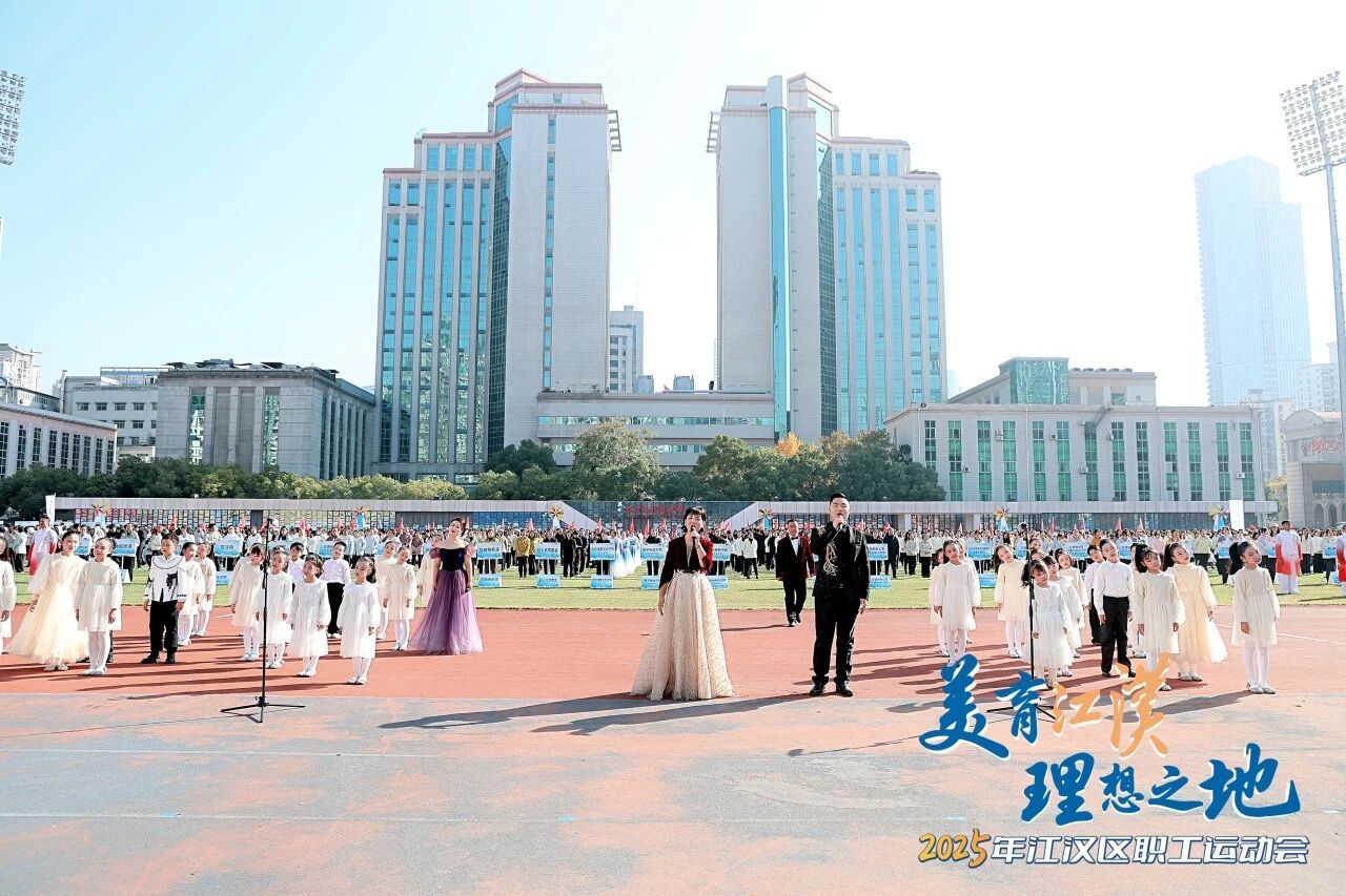 文藝演出環(huán)節(jié)同樣精彩紛呈。開場舞《美麗中國》以熱情舞步禮贊祖國;體育舞蹈《躍動未來》上演力量與美的碰撞;《活力江漢》歌曲串燒中,小歌手彭彥凱與武漢天使童聲合唱團(tuán)帶來動人演唱,職工歌手聯(lián)袂獻(xiàn)唱《江漢四季》《相親相愛》,引發(fā)全場共鳴;千人工間操展演氣勢恢宏,全場配合呈現(xiàn)“I?JH”巨型畫面,將開幕式推向高潮。