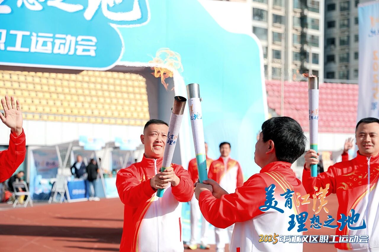 開幕式上,火炬?zhèn)鬟f成為最激動人心的環(huán)節(jié)。前期龍王廟畔莊嚴(yán)采集的火種,承載著楚地先民的開拓精神與新時代職工的奮斗激情,穿越江漢關(guān)、長江書店、中共五大會址、漢口火車站等江漢地標(biāo)抵達(dá)主會場。
