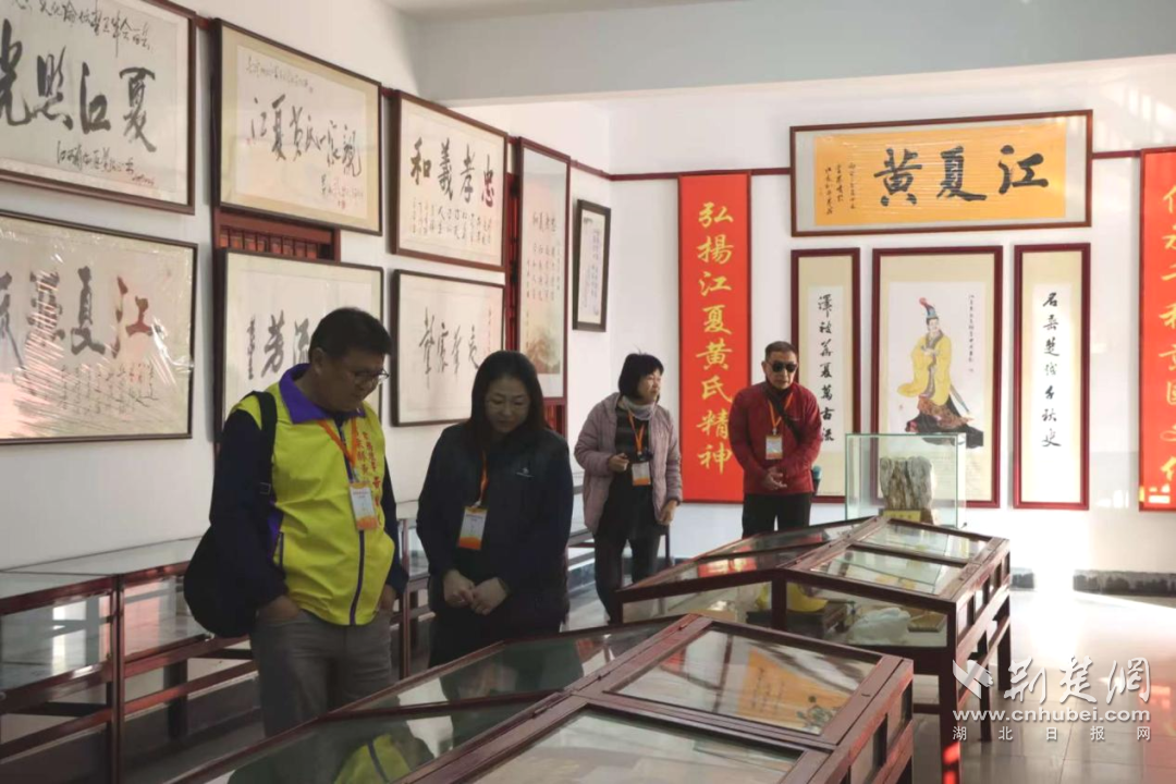 苗栗縣黃氏宗親參觀江夏黃氏大宗祠的陳列館。通訊員供圖