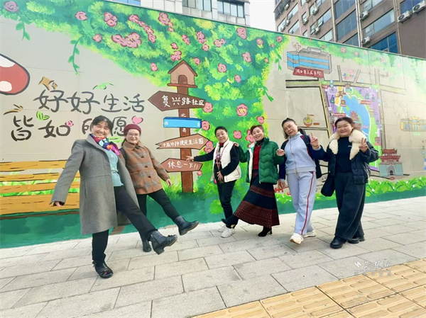 “復(fù)興時光里”特色手繪墻成現(xiàn)場打卡熱點(diǎn),墻上不僅繪有社區(qū)特色地圖與“十五分鐘生活圈”元素,還承載著居民的共同記憶,為社區(qū)文化建設(shè)添上靚麗一筆,成了鄰里溫情與社區(qū)活力的見證。