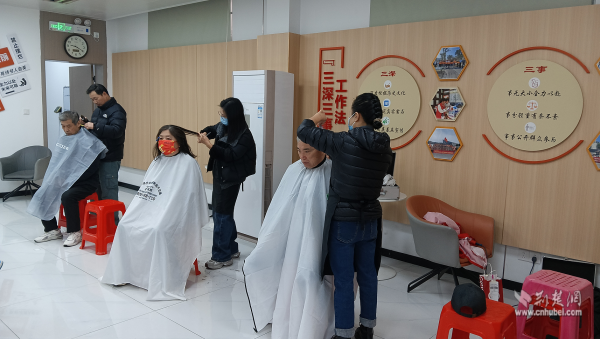 活動(dòng)最后是便民服務(wù)環(huán)節(jié)。社區(qū)對(duì)接武昌“新興學(xué)院”天姿美容美發(fā)學(xué)校資源開展義務(wù)理發(fā)服務(wù)。志愿者們提前布置好服務(wù)區(qū),認(rèn)真做好工具消毒,隨后耐心詢問每一位前來理發(fā)的流動(dòng)黨員和老年人的需求,憑借嫻熟技藝為大家精心修剪發(fā)型。“不出社區(qū)就能享受到這么好的服務(wù),還能和黨員同志們一起學(xué)習(xí)交流,心里特別暖。”一位剛理完發(fā)的老人滿意地說道?,F(xiàn)場(chǎng)洋溢著濃濃的鄰里溫情。
