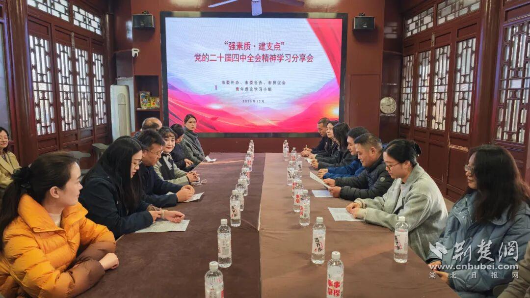 荊楚網(wǎng)(湖北日報網(wǎng))訊(通訊員 史金鐘)冬日的龜山層林浸染,楚風(fēng)漢韻縈繞書香。12月11日下午,來自武漢市委外辦、市委臺辦、市貿(mào)促會的青年理論學(xué)習(xí)小組在龜山楚才韜奮書院聯(lián)合舉辦“強素質(zhì)·建支點”讀書活動暨黨的二十屆四中全會精神學(xué)習(xí)分享會。30余名青年干部通過實地調(diào)研、思想碰撞,深學(xué)細(xì)悟全會精神,凝聚服務(wù)“五個中心”建設(shè)的青春合力。