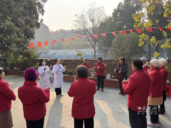 荊楚網(wǎng)(湖北日報(bào)網(wǎng))訊(通訊員 熊志芳)“一、二、三、四……手指慢慢張開,不要用力過猛……”近日,武昌區(qū)珞珈山街道武大工學(xué)部老年服務(wù)中心的活動(dòng)室內(nèi),一群高齡老人正跟著節(jié)拍認(rèn)真練習(xí)手指舞,身旁身穿白大褂的醫(yī)護(hù)人員不時(shí)上前調(diào)整動(dòng)作、叮囑要領(lǐng)。這場將康復(fù)訓(xùn)練與新年籌備相結(jié)合的“醫(yī)養(yǎng)結(jié)合”特色活動(dòng),讓老人們在靈動(dòng)的指尖舞動(dòng)中強(qiáng)健體魄,重拾健康與自信。