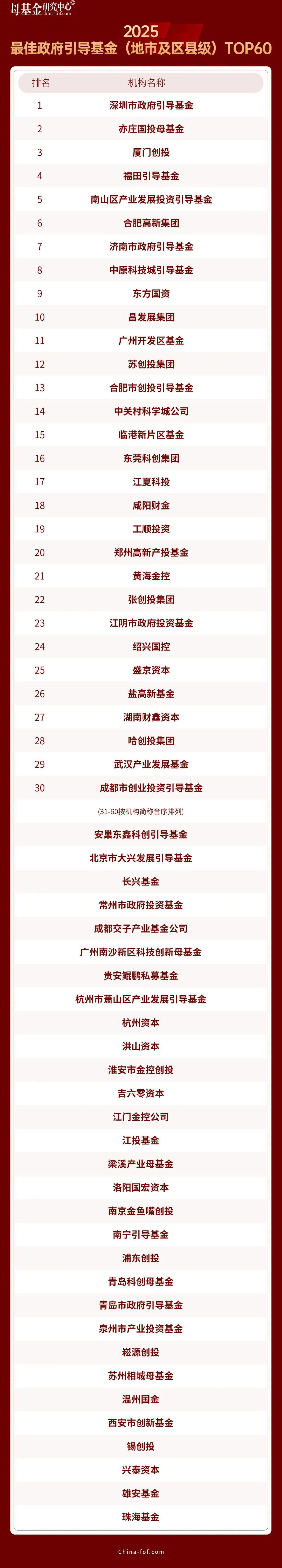 12月29日,母基金研究中心發(fā)布2025年度榜單,江夏科投集團(tuán)獲評“2025最佳政府引導(dǎo)基金(地市及區(qū)縣)TOP30”第17名、科投集團(tuán)董事長韓偉榮膺“2025最佳母基金投資人TOP40”稱號,連續(xù)兩年榮登榜單是業(yè)內(nèi)權(quán)威機(jī)構(gòu)對江夏科投集團(tuán)作為科技創(chuàng)新投資平臺投資能力、管理能力的認(rèn)可,更標(biāo)志著其在區(qū)域科技創(chuàng)新資源整合、產(chǎn)業(yè)培育布局等方面的能力已躋身全國地市及區(qū)縣級引導(dǎo)基金第一梯隊(duì),成為地方政府引導(dǎo)基金助力區(qū)域經(jīng)濟(jì)高質(zhì)量發(fā)展的標(biāo)桿樣本。