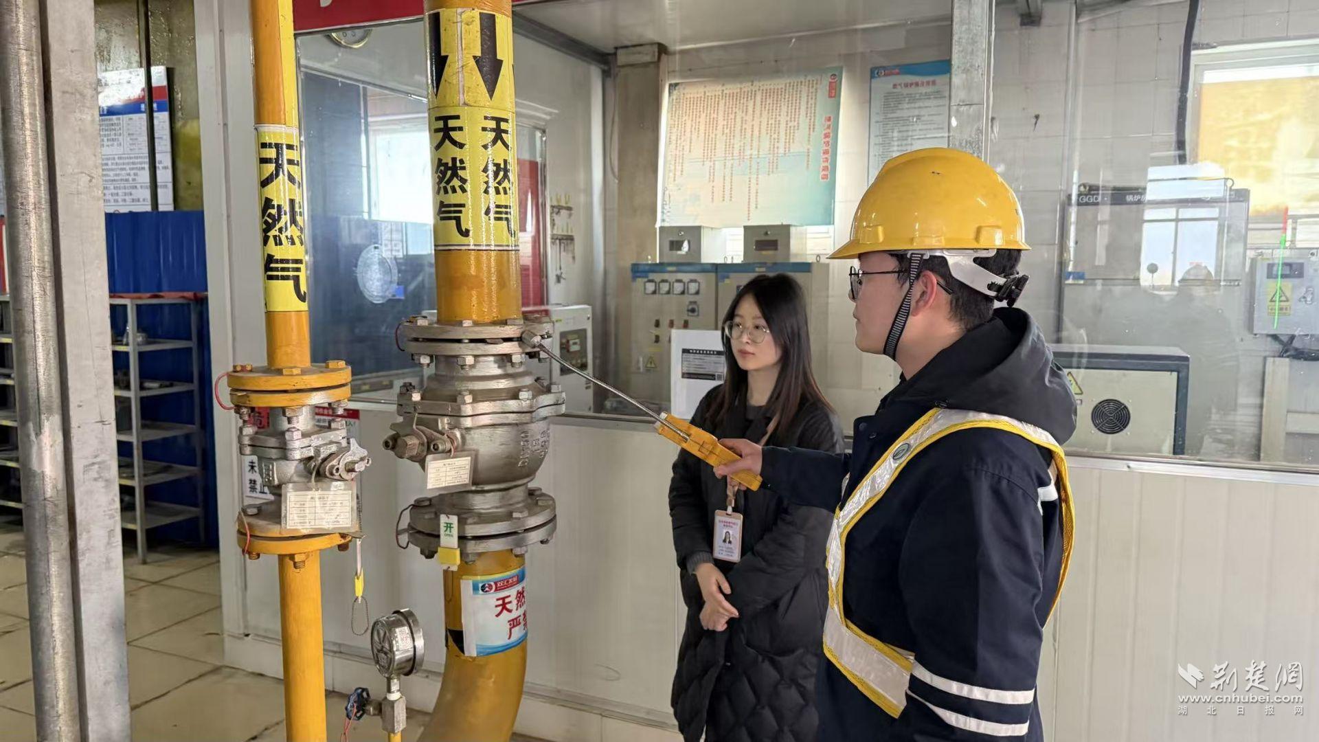 1月7日下午,在湖北武漢雙匯食品有限公司廠區(qū)內,燃氣管網安檢員費工一邊檢查天然氣閥門、調壓設備,一邊向企業(yè)負責人張寶軍叮囑道。