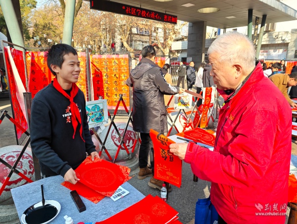 荊楚網(wǎng)(湖北日報網(wǎng))訊(通訊員 胡雅菲 許小玲)為弘揚中華優(yōu)秀傳統(tǒng)文化,凝聚區(qū)域共建合力,助力武昌區(qū)創(chuàng)建“中國書法之鄉(xiāng)”,1月15日上午,由湖北省教育學(xué)會書法教育專業(yè)委員會主辦、武昌區(qū)黃鶴樓街道花堤社區(qū)聯(lián)合共建單位湖北省武昌實驗小學(xué)承辦的“社區(qū)學(xué)校心連心,喜送福聯(lián)迎新春”公益活動,在實驗小學(xué)門口拉開帷幕。