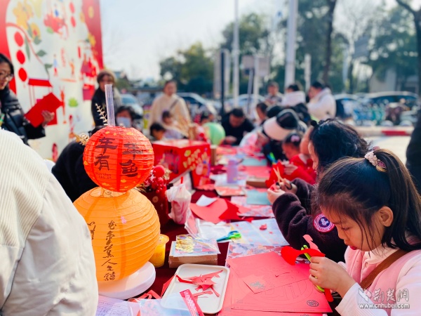 現場節(jié)日氛圍濃厚,文化氣息撲面而來。居民們不僅可以便捷選購年貨,還能免費參與多項文化體驗活動。書法老師帶領孩子們揮毫潑墨,一副副春聯和福字傳遞祝福;黃鶴書房設置的投壺游戲區(qū),讓市民在趣味中重溫傳統(tǒng)年俗;非遺手作課堂內,搖錢樹制作、剪窗花等技藝吸引眾人親手嘗試,近距離感受非遺魅力。市集匯聚30余家品牌商戶,商品涵蓋生鮮食品、休閑零食、健康禮品、文創(chuàng)產品等,充分滿足了居民“一站式”購齊年貨的多元需求,真正實現便民與惠民相統(tǒng)一。