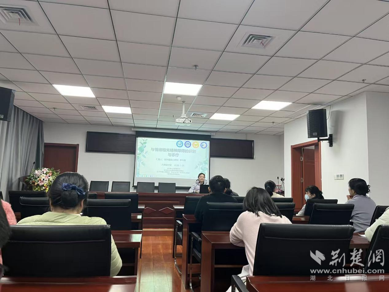 荊楚網(wǎng)(湖北日報網(wǎng))訊(通訊員 孫琳 李玲霞)1月26日,武漢市武東醫(yī)院精神障礙防治辦公室主治醫(yī)師李玲霞,下沉至東湖高新區(qū)九峰街社區(qū)衛(wèi)生服務(wù)中心開展精神障礙防治專題講座,該中心60余名基層醫(yī)務(wù)工作者參與學習。