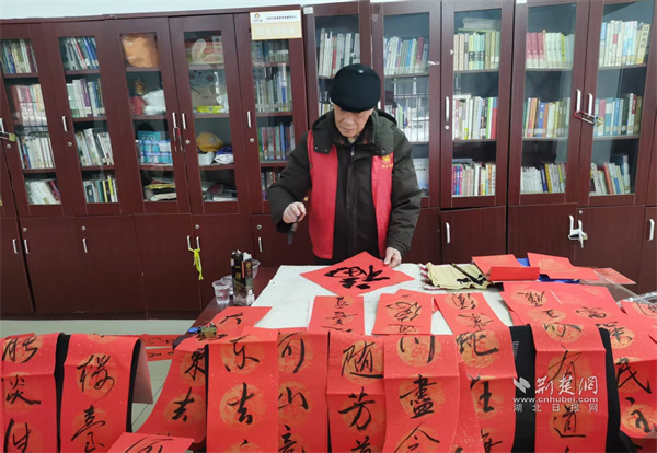 書(shū)法愛(ài)好者現(xiàn)場(chǎng)書(shū)寫(xiě)春聯(lián)。 通訊員供圖