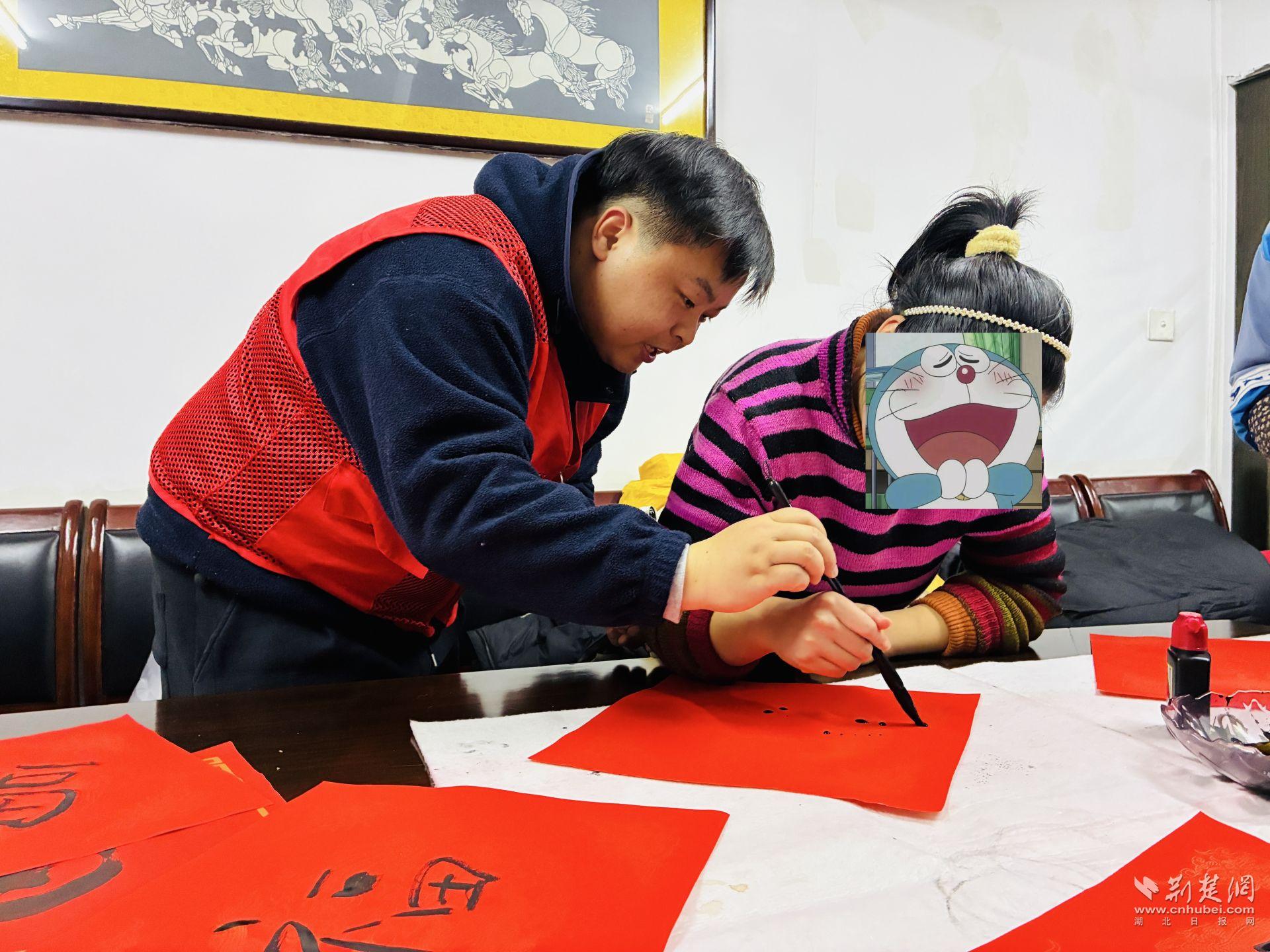活動(dòng)現(xiàn)場還設(shè)置了春聯(lián)書寫互動(dòng)區(qū)。書法老師從握筆姿勢、用筆力度講起,耐心示范基礎(chǔ)筆法,并根據(jù)每個(gè)人的情況進(jìn)行指導(dǎo)。筆墨鋪展間,一副副春聯(lián)逐漸成形,內(nèi)容樸實(shí)真切,寄托著對新一年的期望。