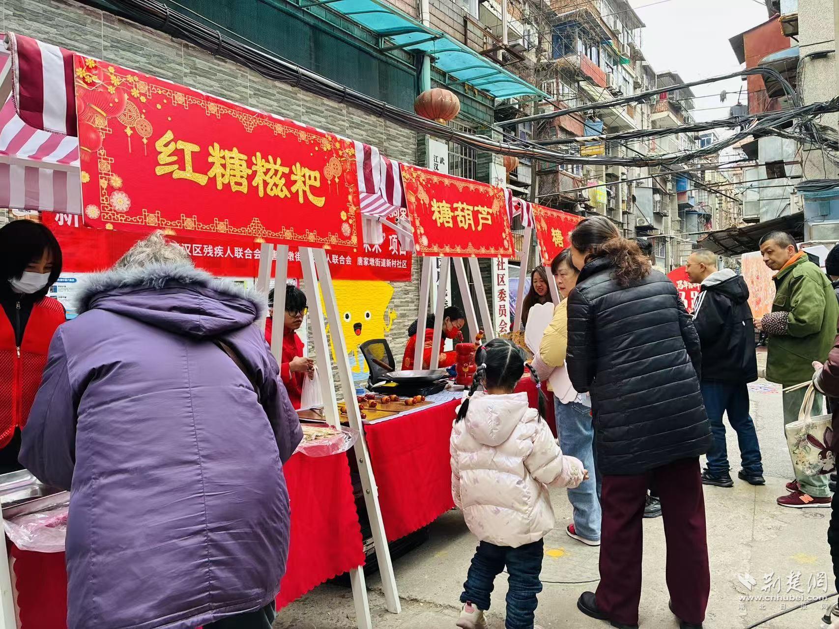 當(dāng)天,新村社區(qū)舉辦“匠心傳承煥新彩 非遺助殘啟未來”項(xiàng)目系列活動(dòng)之一——“非遺游園匯百藝 鄰里同心啟新章”。在江漢區(qū)殘疾人聯(lián)合會(huì)和唐家墩街道殘疾人聯(lián)合會(huì)的指導(dǎo)下,這場游園會(huì)以非遺為紐帶,把文化體驗(yàn)、鄰里互動(dòng)和助殘關(guān)懷融進(jìn)一場“家門口的過年”。