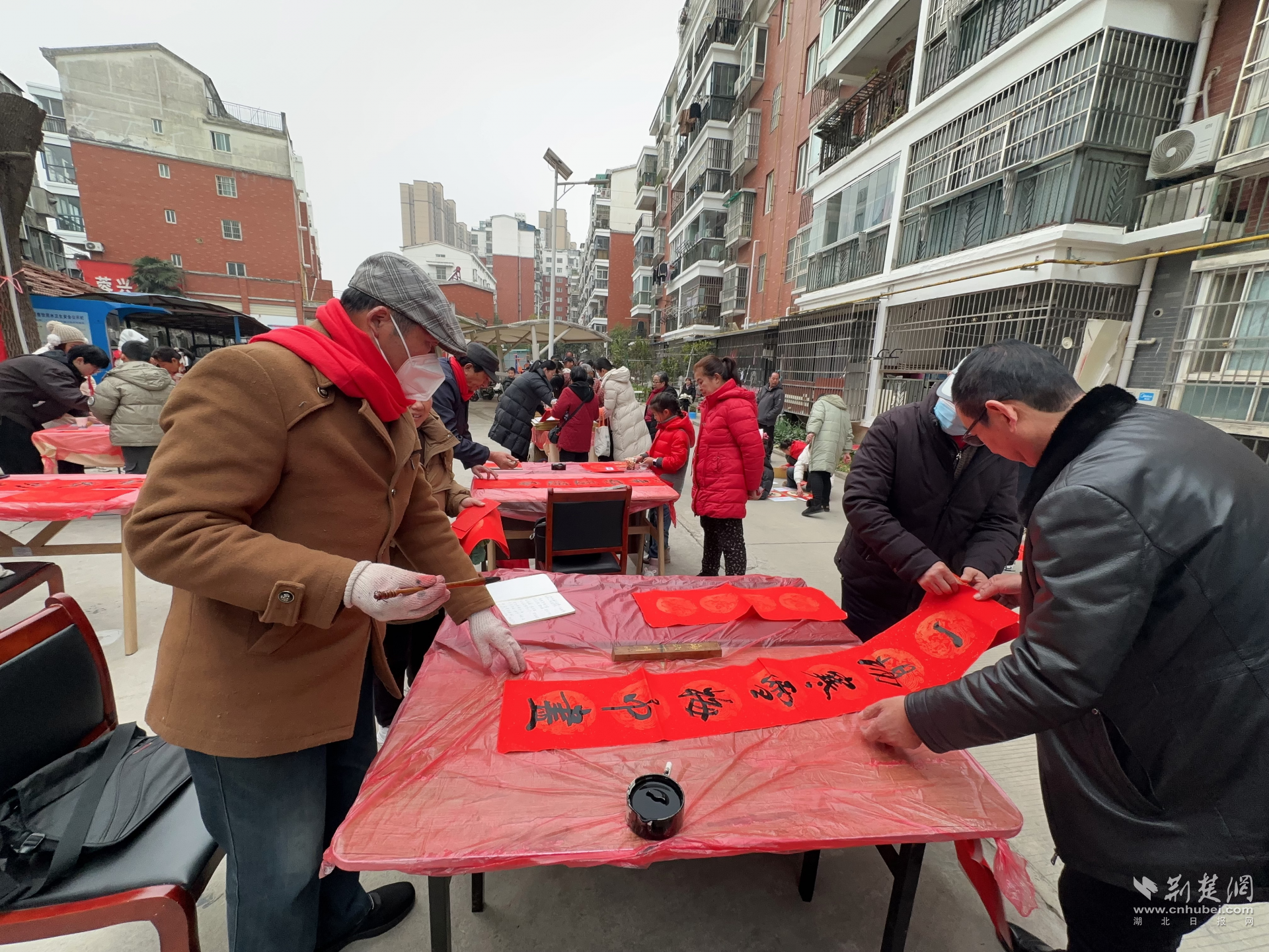書(shū)法愛(ài)好者們現(xiàn)場(chǎng)揮毫潑墨書(shū)寫春聯(lián)。通訊員供圖