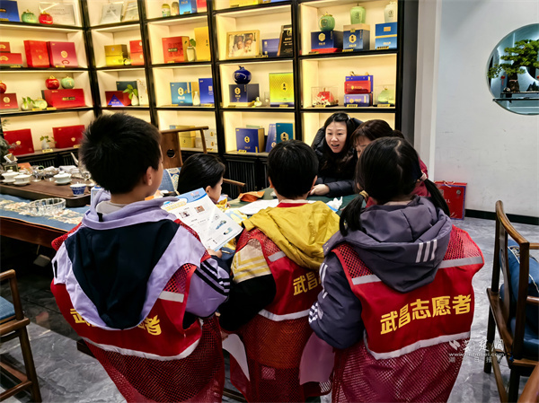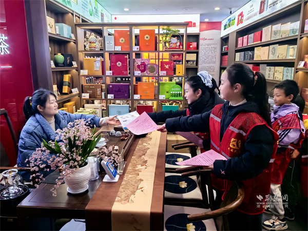 來自樓宇托管班的十余名小學生,在志愿者引導下化身“小小安全宣傳員”。他們身著“紅背心”,手持禁鞭宣傳折頁和倡議書,分組走進陸羽茶都商鋪和人群聚集點,向商戶、顧客及過往市民講解煙花爆竹禁燃禁放的相關規(guī)定、潛在危害及環(huán)保意義,并分發(fā)倡議資料。