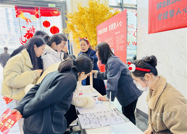 此外,現(xiàn)場還設(shè)有“黨建宣傳與入黨咨詢站”,通過展板系統(tǒng)展示樓宇黨建工作成效、支部風(fēng)采與陣地建設(shè)情況,工作人員為職工提供入黨政策講解和成長指導(dǎo),吸引多位職工駐足咨詢并登記入黨意向,推動組織關(guān)懷切實延伸到樓宇一線。