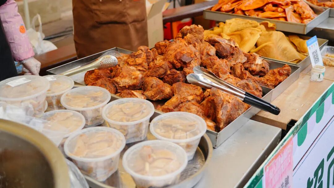 作為活動的重要組成部分,特色年貨市集“滿倉吉市”匯集了滿滿的煙火氣與本土特色。黃陂三鮮、鴨子煲、清湯鵝等地道美食香氣四溢,喚醒味蕾記憶。本地農(nóng)產(chǎn)品等特色攤位也一字排開,好不熱鬧。朝陽村的豆絲攤位前早早排起了長隊。朝陽村黨支部書記、村委會主任熊偉介紹:“今天我們準備了200斤米漿,現(xiàn)場制作近千張豆絲免費供游客品嘗,既讓大家嘗到家鄉(xiāng)味,也帶動了村里油、土雞、糯米等農(nóng)副產(chǎn)品的銷售?!?/p>