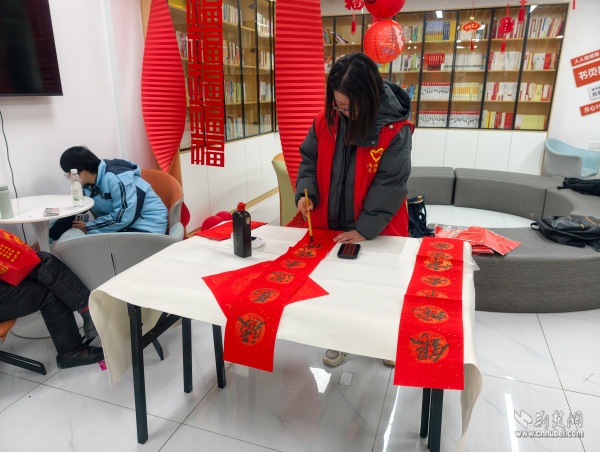 青年志愿者為居民寫春聯(lián)。 通訊員供圖