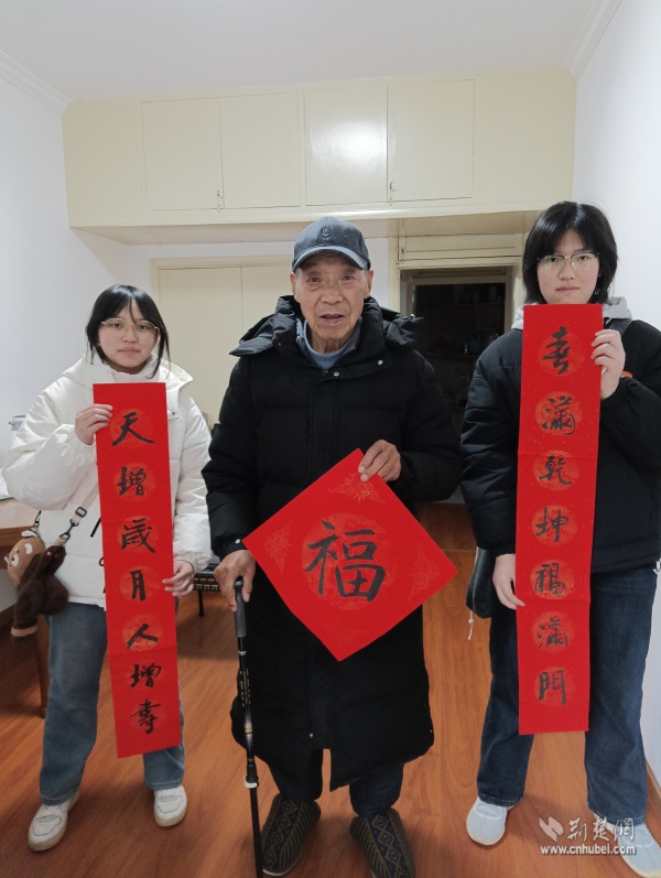 針對(duì)社區(qū)高齡、獨(dú)居老人,志愿者們開展“敲門行動(dòng)”,走進(jìn)“鶴耋安”重點(diǎn)關(guān)愛對(duì)象家中。在88歲的李奶奶家門口,志愿者們將一副寫有“福壽安康”的春聯(lián)認(rèn)真貼好,紅紙金字映亮了老人的笑臉?!澳銈円粊恚依锞蜔狒[了,這春聯(lián)比買的還暖心!”李奶奶說道。每到一戶,志愿者們都送上手寫春聯(lián)與“?!弊郑瑤兔ε挪樗婋[患,陪老人聊家常、憶往昔,用陪伴驅(qū)散冬日的冷清。