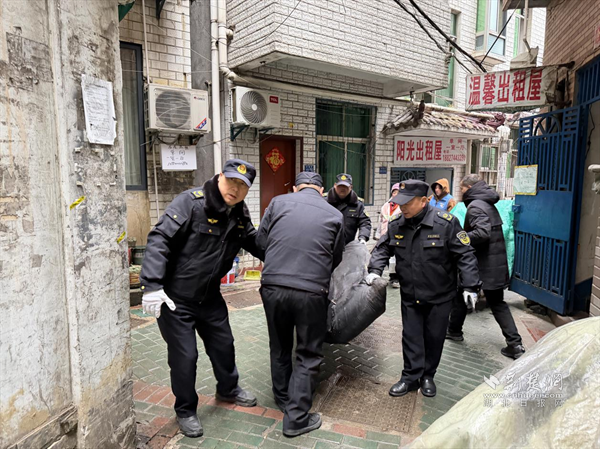 執(zhí)法隊員協(xié)助社區(qū)清理居民生活雜物。 通訊員供圖