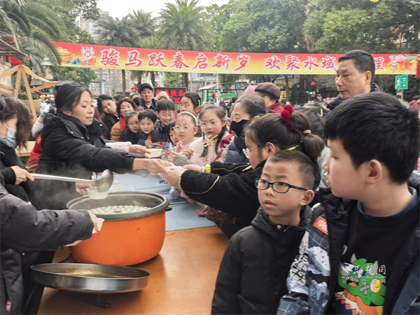 “民俗雅趣”區(qū)域里,激昂的舞龍表演率先拉開序幕,為新春送上風調(diào)雨順的美好寓意。數(shù)百條燈謎懸掛現(xiàn)場,涵蓋成語典故、詩詞歌賦、生活常識等內(nèi)容,居民競猜解謎,贏取精美小禮;現(xiàn)場煮制的元宵熱氣騰騰,工作人員逐一分發(fā),一碗甜糯元宵暖胃又暖心。特邀的糖人師傅現(xiàn)場展藝,糖稀經(jīng)捏、拉、吹、轉(zhuǎn),化作栩栩如生的造型,讓居民在甜蜜中感受民間非遺魅力?;顒蝇F(xiàn)場還同步設置家電國補政策宣傳點,工作人員細致解讀購置補貼政策,把惠民福利送到居民家門口。