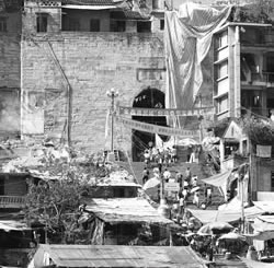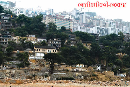 截?cái)辔咨皆朴,高峽出平湖。再過(guò)兩天,承載著億萬(wàn)中國(guó)人夢(mèng)想的三峽大壩135米蓄水就將開(kāi)始,長(zhǎng)江三峽一些人們熟悉的景觀將從此沉睡在煙波浩淼的高峽平湖之中。(左圖—)豐都老城廢墟上,一名婦女正逗孩子玩。遠(yuǎn)處是高樓林立的新縣城。