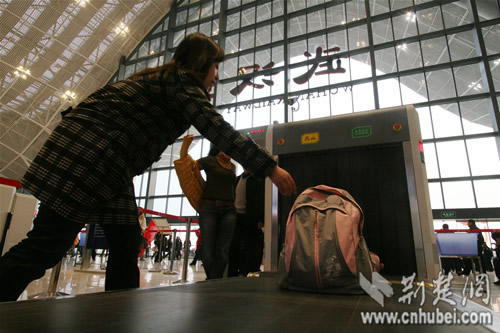 一位乘客正在接受安檢