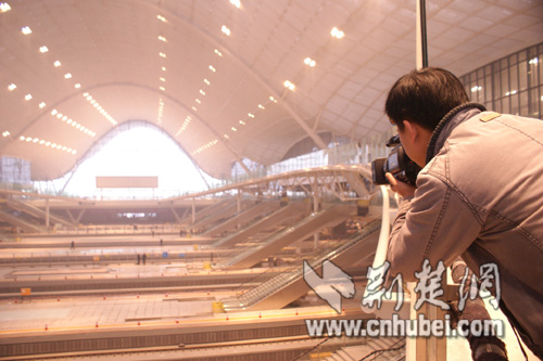 荊楚網(wǎng)消息(記者高霞、艾凌璐 攝影記者王唯翀)12月10日早上7時30分,湖北日報、湖北電視臺、湖北人民廣播電臺、荊楚網(wǎng)等四十家來自中央駐漢、湖北省級及地市媒體一行開始武廣體驗之旅。動車組9時52分發(fā)車,12時42分到達(dá)終點站廣州北。由于位于番禺的廣州南站未能及時建成,位于花都的廣州北站成為武廣客運專線的臨時始發(fā)站和終點站。