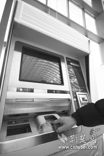 武漢站內(nèi)的自助售票機(jī)(記者譚新杰攝)