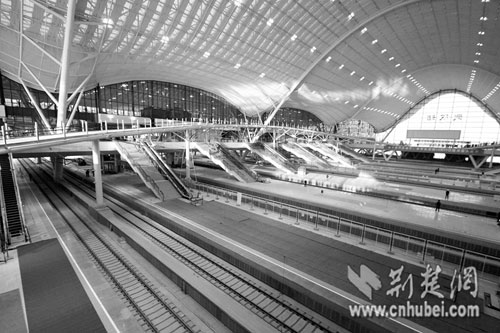 荊楚網(wǎng)消息 (楚天金報(bào)記者譚新杰 通訊員吳志華) 日前,武廣客專北端的起點(diǎn)站——武漢火車站已正式“掛牌”。自從2006年9月開(kāi)工以來(lái),這座飄逸的“鋼鐵巨鵬”,便淹沒(méi)在鏗鏘的建設(shè)聲中,一般人也很難進(jìn)入站內(nèi)一看究竟,只能遠(yuǎn)遠(yuǎn)地看著它的雙翼逐漸成形,雄風(fēng)漸展。這種結(jié)構(gòu)用鋼量超過(guò)鳥(niǎo)巢的偉大建筑,也被蒙上了一層神秘的面紗。