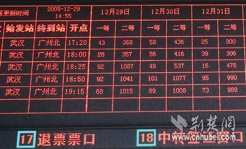 12月29日下午2點(diǎn)55分記者看到的武廣高鐵車(chē)票銷(xiāo)售情況