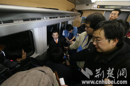 列車上,武漢鐵路局黨委書記張友松接受了記者采訪。他說(shuō),武廣高鐵充分展示了中國(guó)高速鐵路技術(shù)的最新成就,振奮了民族自信心。它的建成開(kāi)通,充分證明了中國(guó)鐵路建設(shè),尤其是高速鐵路建設(shè)發(fā)展水平已處于世界領(lǐng)先水平。