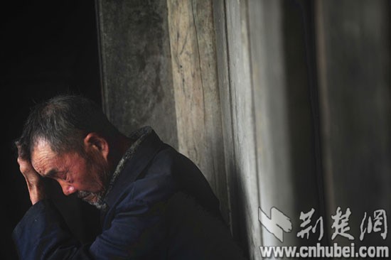 83歲的爺爺默默抽著旱煙,淚水充滿眼眶。