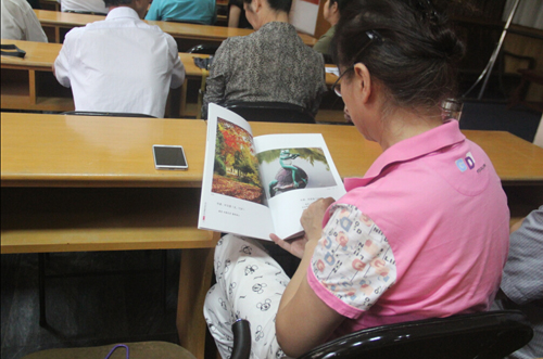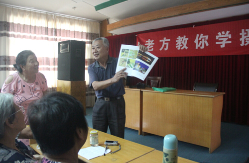 8月2日下午,在經(jīng)過半天休整之后,方老師開始為團員們講課!拔覀兝夏耆藨(yīng)該有自己的興趣和追求,要學(xué)會自己找樂!薄艾F(xiàn)在小孩都是老年人在帶,我們學(xué)會了攝影就可以教孩子,對他們將來也有好處!狈嚼蠋煹囊幌,頓時就讓許多團員萌生了學(xué)攝影的想法。接著,他向團員們展示了自己拍攝的眾多精彩照片,并拿出一本攝影圖集供大家傳閱。“這本圖集里,都是我在老年大學(xué)教書時,學(xué)員們拍的照片。最大的學(xué)員都80多歲了,但是照片拍的特別好。相信大家通過學(xué)習(xí),也可以拍的如此精彩。”方老師的話,給了在座的老人極大的信心,大家也學(xué)的更加認(rèn)真。